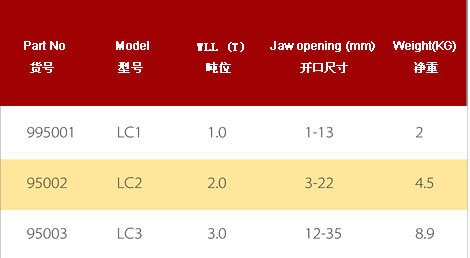 LC型橫吊鋼板起重鉗 荷載范圍:1-3T .