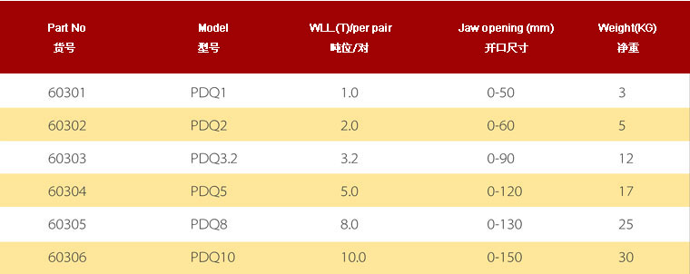 PDQ系列單板起重鉗 荷載范圍:1-10T.