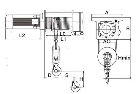 SH固定式鋼絲繩電動(dòng)葫蘆(滑輪倍率2/1):