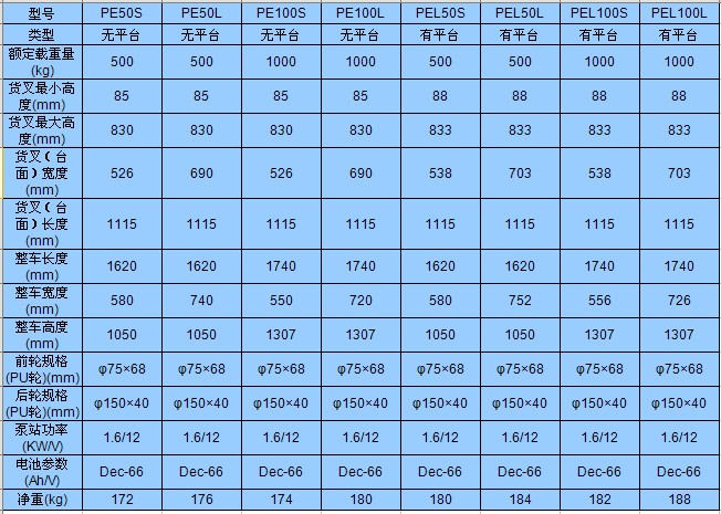 無錫虎力PE型電動剪式升高液壓搬運(平臺)車技術(shù)參數(shù):