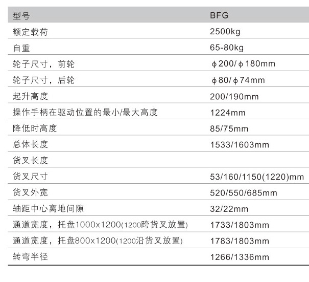 浙江西林BFG平板搬運車技術(shù)參數(shù):